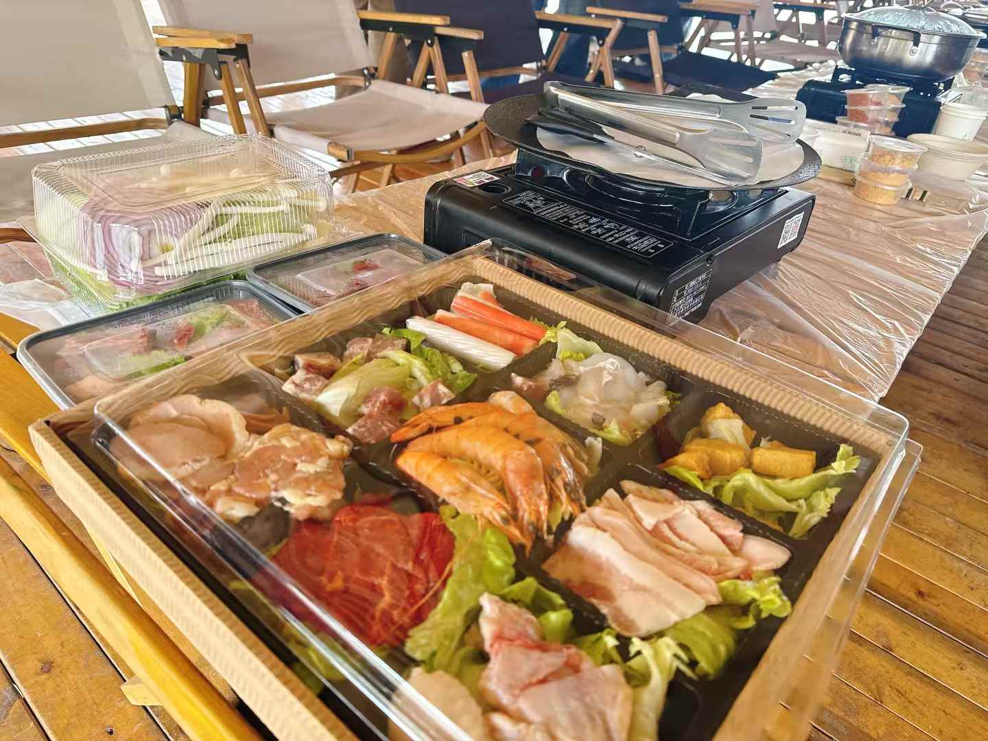 中午,老师们在山腰的绿茵草坪上,展开了一场春日野宴。汤锅区热气升腾,藕片沉浮如小舟,鲜嫩菌菇随红油翻滚起舞;烧烤架前,肉串滋滋作响,孜然香随风飘散。平日里忙碌的双手此刻默契协作。炊烟袅袅中,老师们分享着课堂趣事与育儿心得,欢声笑语漫过整片山坡。