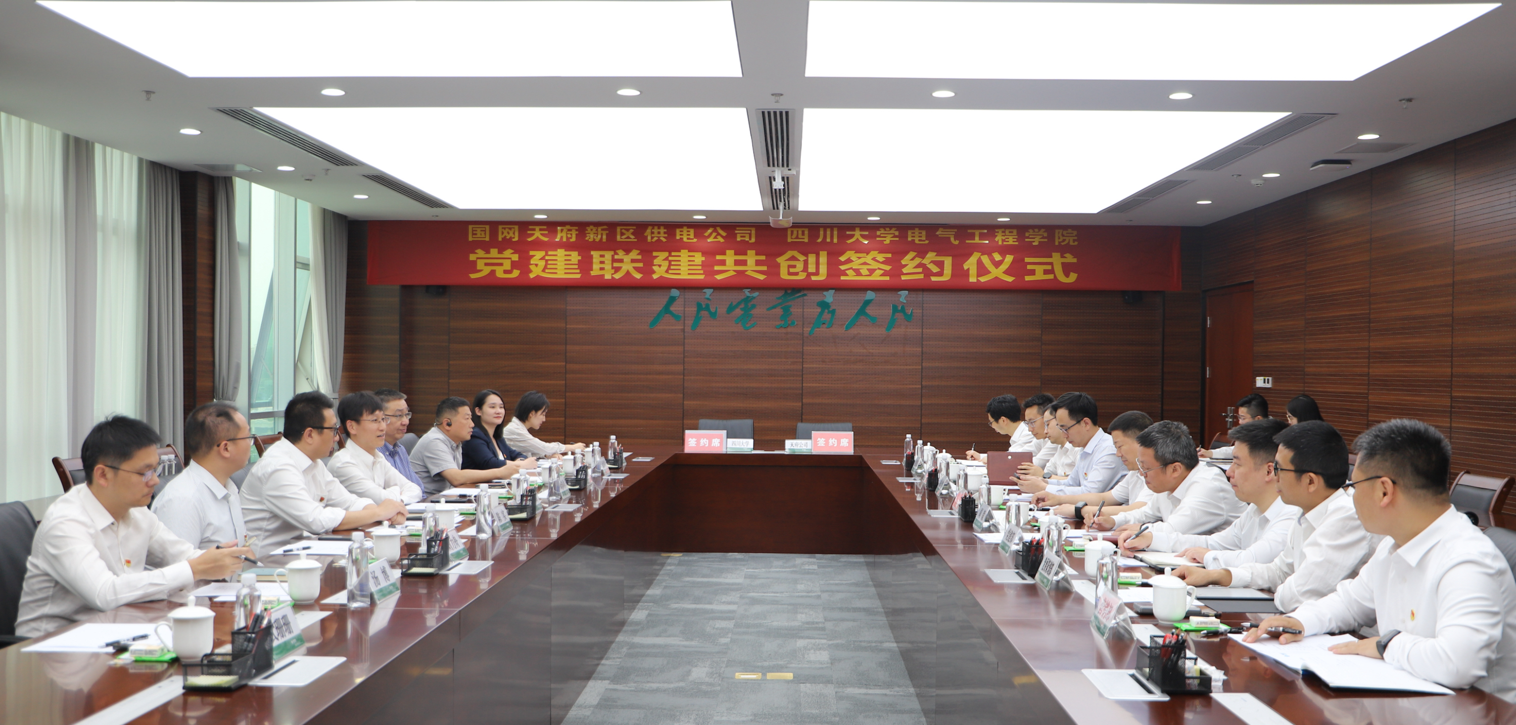 4月22日,太阳成集团122ccvip公司党委与国网天府新区供电公司党委签订党建联建共创协议。公司党委书记赵昱辉,副经理、电气工程系党支部书记陈实,国网天府新区供电公司总经理权锐、党委书记周毅,及双方相关部门负责人参加签约。天府公司总经理权锐主持了签约仪式。