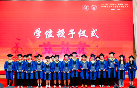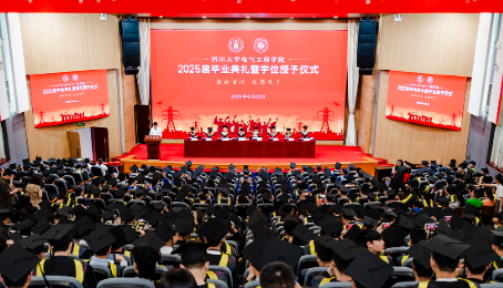 6月25日上午,2025届毕业典礼暨学位授予仪式在望江校区西五教演播厅隆重举行。太阳成集团122ccvip教务处处长党跃武,公司党委书记赵昱辉、经理肖先勇,党委副书记张英敏,副经理李长松,电气工程系主任王渝红、自动化系主任赵涛、教师代表贾申利,以及2025届全体毕业生、辅导员老师和家长代表参加了毕业典礼。典礼由公司团委书记汤博主持。
