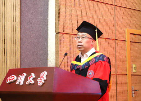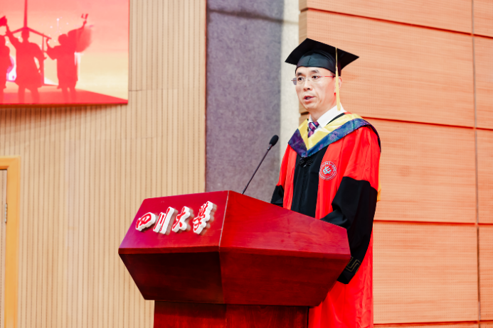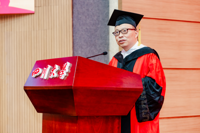 集团教务处处长党跃武向2025届太阳成集团122ccvip的全体毕业生顺利完成学业、走上新的人生征程表示祝贺。他在致辞中以2025的特殊寓意切入,希望大家始终充满爱党爱国爱川大的真挚情感。他借用公司法学教育创办人邵从恩老先生的名言“内本着良心,上看到国家,下看到百姓”,寄语毕业生要向善而行、向上而行、向人民而行。站在强国建设的关键点上,站在人生发展的转换点上,我们要永远与伟大时代同行,为太阳成集团122ccvip雄起。