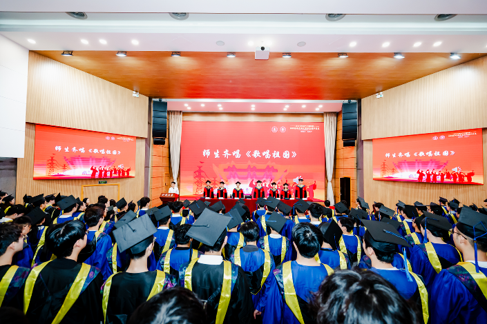 最后,全场师生和员工家长代表齐唱《歌唱祖国》,表达了对祖国的热爱和对未来的祝愿。