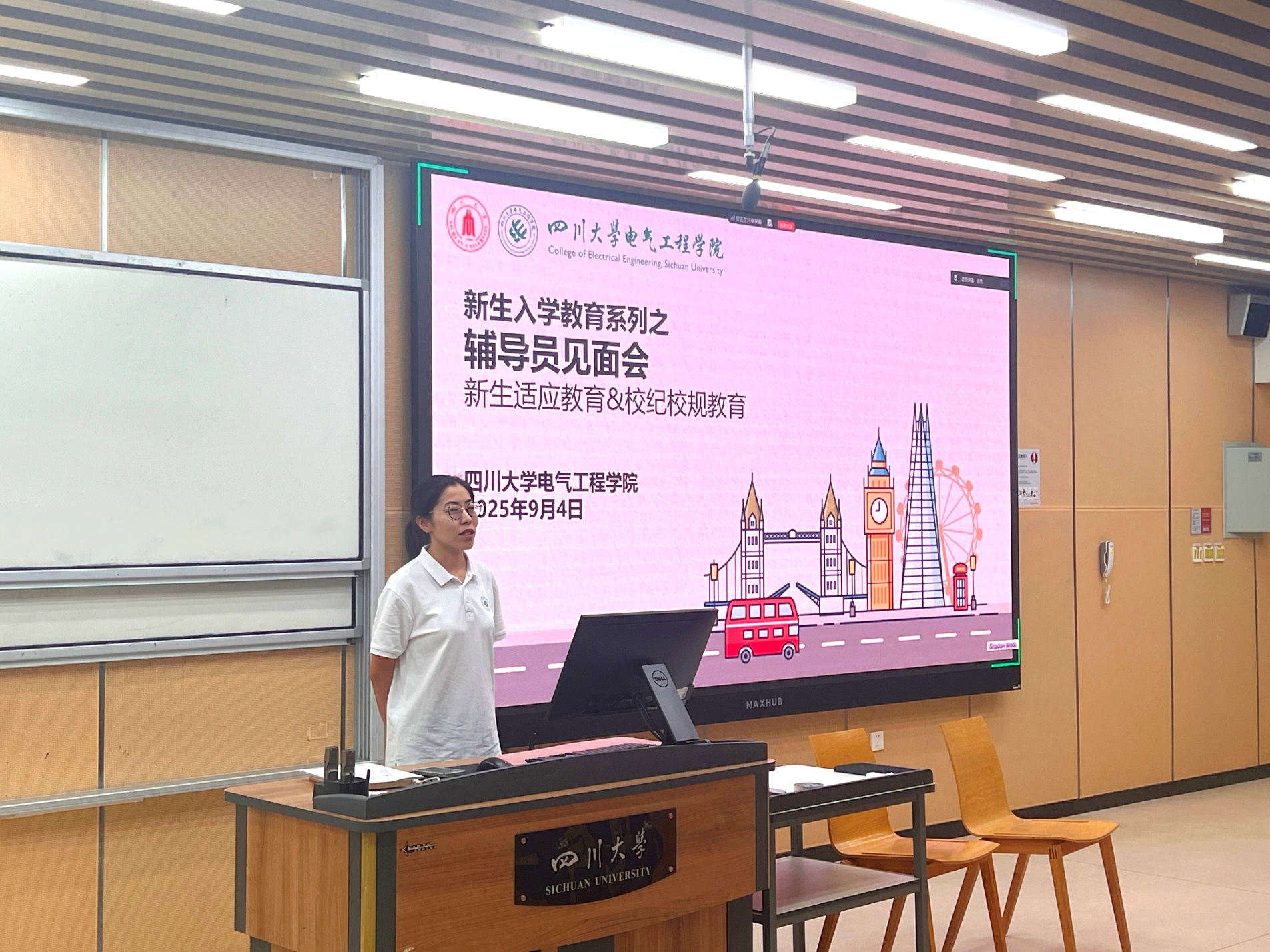 9月4日至9月16日,电气工程公司顺利开展了2025级新生入学教育周系列活动。本次教育周内容丰富、形式多样,先后开展了校纪校规安全教育暨辅导员见面会、团学骨干培训会、心理健康教育交流会、新生家长线上见面会、新生资助政策宣讲会、校史文化学习主题活动及网络诈骗防范宣讲活动等。通过开展系统性的入学教育,公司旨在帮助新生快速适应大学环境,深入了解公司的教学管理体系,同时引导他们树立远大志向,传承川大精神,为老员工活奠定坚实基础。