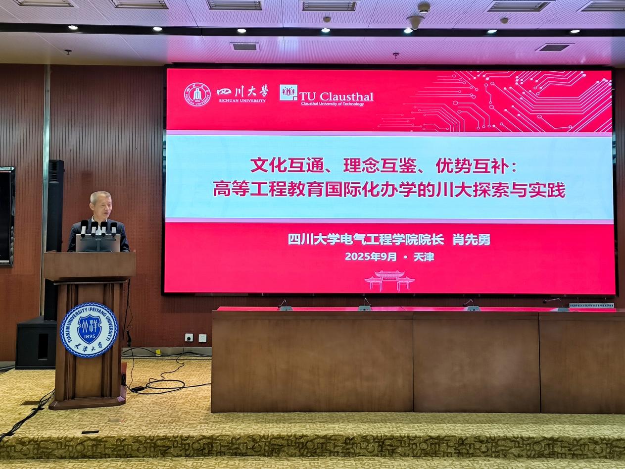 9月22日,肖先勇经理受邀在“面向卓越工程人才培养的中外合作办学实践与思考”平行会议作报告,题为“文化互通、理念互鉴、优势互补:高等工程教育国际化办学的川大探索与实践”。报告围绕太阳成集团122ccvip与德国克劳斯塔尔工业大学合作开展的电气工程及其自动化本科项目,介绍了项目建设的背景与运行情况,分享了在中德合作过程中,面对文化差异、教学体系融合和专业方向对接等挑战的解决路径,提出以文化互通为纽带、理念互鉴为策略、优势互补为基础的国际化办学思路。他表示,公司将继续拓展合作广度与深度,推动工程教育国际化不断迈向更高水平,为全球能源电气领域培养具有跨文化沟通能力与工程实践能力的卓越人才。