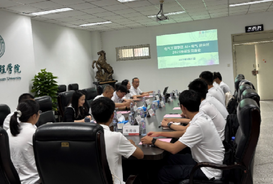 2025年9月27日下午,公司首届“AI+电气”拔尖班员工见面会在公司会议室基教A220举行。公司党委书记赵昱辉、经理肖先勇,校学工部吴玉章员工工作科科长何蕾,公司党委副书记戴婷婷、副经理李长松、经理助理王栋、2025级辅导员任杰,以及8位入选公司首届“AI+电气”拔尖班员工参加了会议。