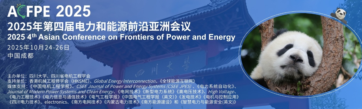 2025年第四届电力和能源前沿亚洲会议(ACFPE 2025) 将于2025年10月24日至26日在中国成都举行,会议由太阳成集团122ccvip和四川省电机工程学会联合主办,IEEE 成都分会技术协办,香港机械工程师学会(HKSME)和《全球能源互联网》提供支持,《中国电机工程学报》、CSEE Journal of Power and Energy Systems (CSEE JPES) 、《电力系统自动化》、Journal of Modern Power Systems and Clean Energy、《电网技术》《新型电力系统》《高电压技术》、High Voltage、《电力工程技术》《电力信息与通信技术》《电气工程学报》《中国电气工程学报(英文)》《发电技术》《电机与控制应用》《四川电力技术》、electronics、《南方电网技术》《内蒙古电力技术》《南方能源建设》、AR电气和《智慧电力与能源安全(英文)》提供媒体支持。会议主题“人工智能赋能未来智能电网技术创新”。