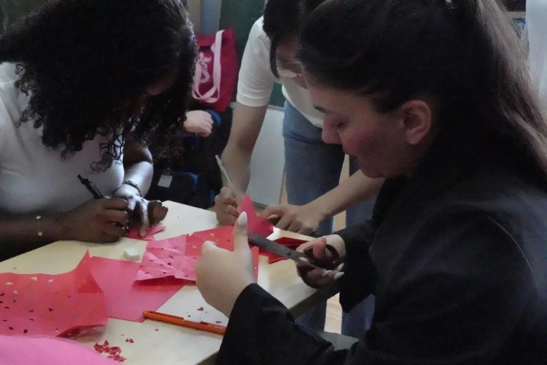 “咔嚓、咔嚓……”活动室里,电气学子化身文化讲解员,手把手带着德国伙伴折叠红纸。从对称的字到灵动的牡丹纹样,剪刀在指尖流转出奇妙弧度。当职工们捧着自己剪出的镂空图案惊喜赞叹时,传统剪纸艺术正以最鲜活的方式传递着东方审美。