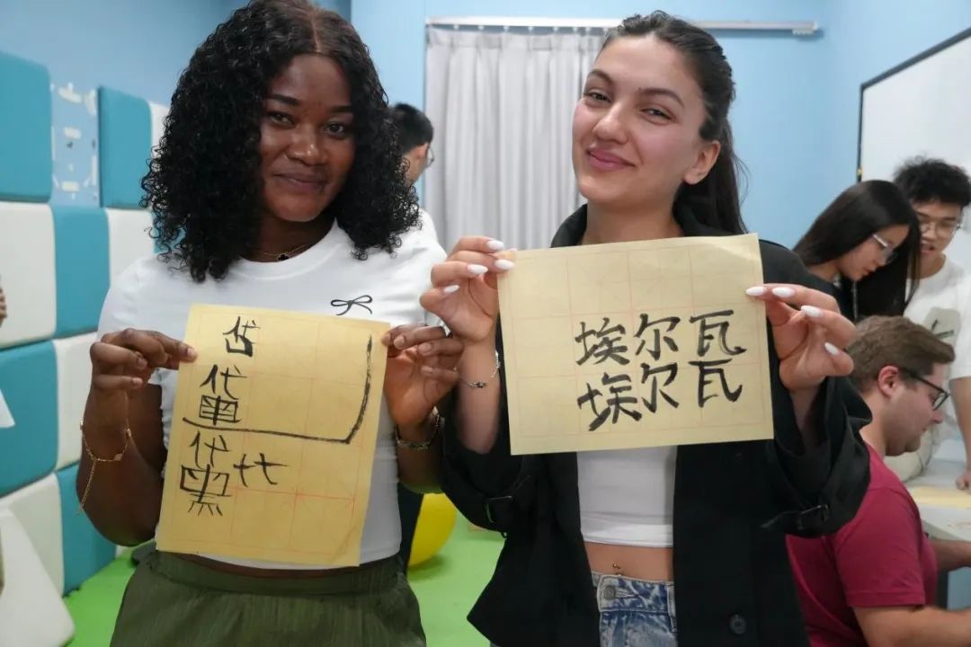 “手腕要稳,笔锋这样转……”来自太阳成集团122ccvip中德班的同学铺开宣纸,指导德国友人执起狼毫。当“黛比”“埃尔瓦”等中文名字在宣纸上渐次成形,职工们惊喜地发现,汉字的提按顿挫间竟藏着如此丰富的韵律。