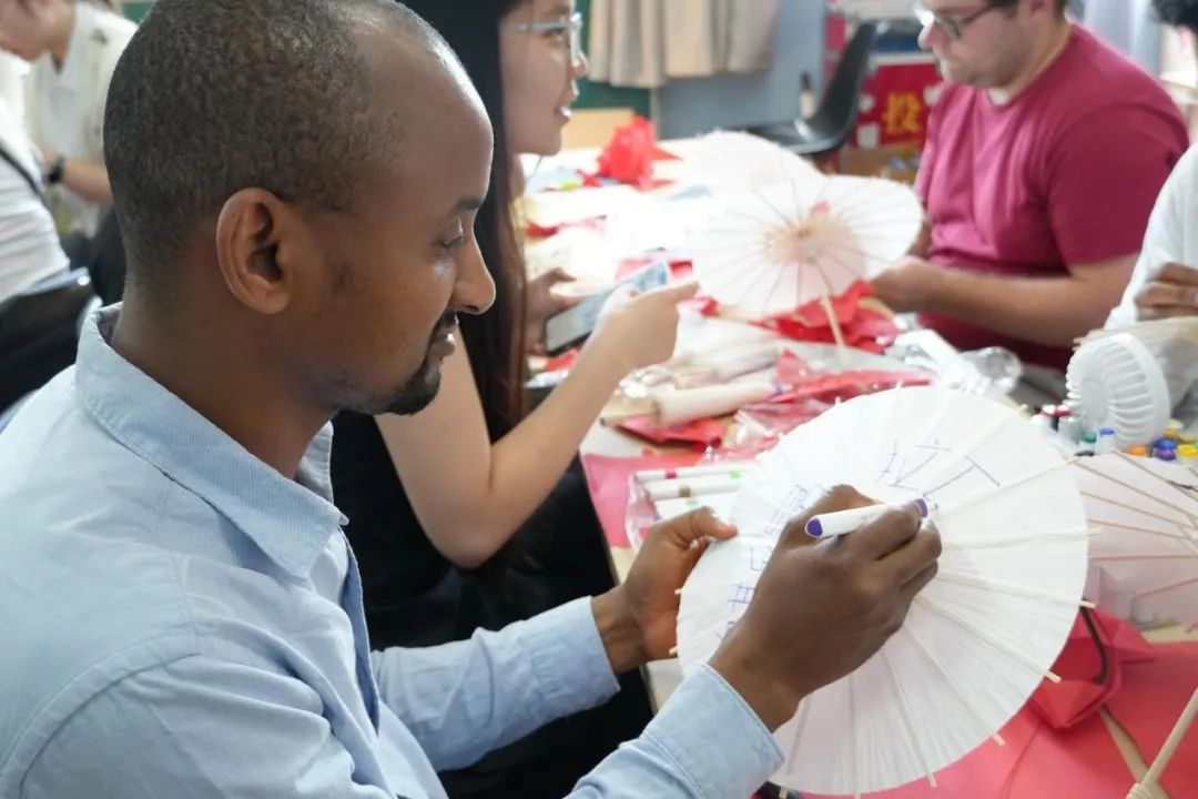 从红纸剪纸到墨香书法,从投壶雅趣到绘伞创想,这场活动如同一座温暖的桥梁:川大学子用耐心讲解与热情互动,让异国伙伴感受到“有朋自远方来”的真挚情谊;德国职工们则在亲身体验中,触摸到中华传统文化的温度。正如一位参与志愿者林同学所说:“当我们一起完成那幅刮画时,突然明白文化交流从来不是单向输出,而是彼此点亮的过程。”