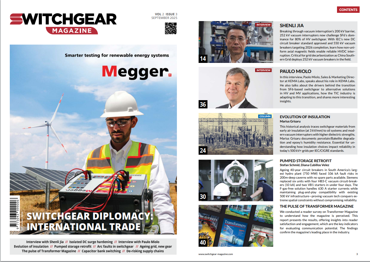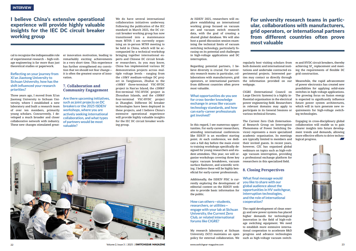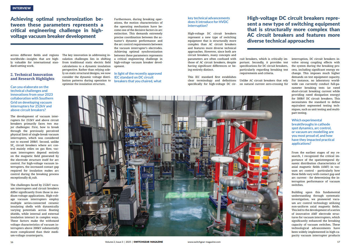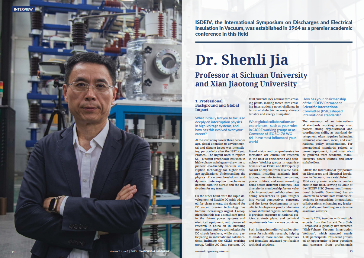 近日,全球电力行业具有广泛影响力的杂志《Switchgear Magazine》在最新一期中刊发了对公司先进电工材料与新型电气设备研究团队负责人贾申利教授的专访文章,全面呈现了贾申利教授在科技创新、学术研究、人才培养与国际合作等方面理念及卓越贡献。