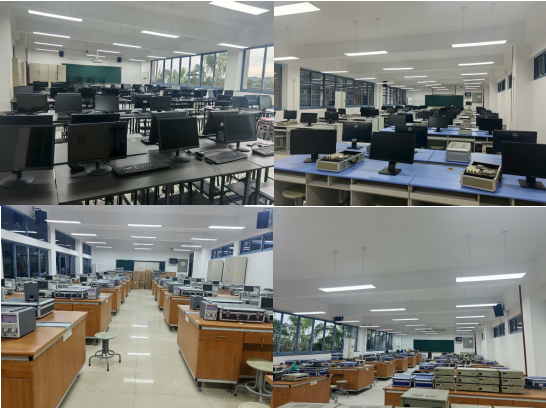 电工电子基础实验教学中心利用暑假完成包括员工创新实验室等在内的所有实验室电路改造、室内装饰等装修,对线路扩容,增加插座到桌,照明灯重新布线更换为LED灯;对所有实验室线路统一布线,按教学要求增设380V的实验线路;实验室墙面重新粉刷乳胶漆,地面打磨清洗,使实验室更加干净、整洁、明亮。电子实习实验室增设安装通风管道,极大改善实验环境。