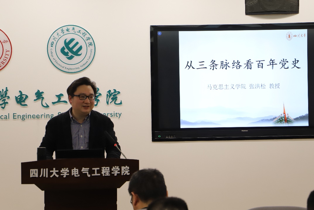 张洪松教授以“从三条脉络看百年党史”为题,深刻阐述了开展党史学习教育的重大意义和重要目标,围绕中国共产党百年历史是一部“不懈奋斗史”、“理论探索史”、“自身建设史”,清晰展现和诠释了中国共产党百年奋斗的光辉历程、为国家和民族作出的伟大贡献,以及带领中国人民在长期奋斗中铸就的伟大精神。详细的讲解使在座党员同志们对党的百年历史有了更加深刻的认识,更加深刻意识到作为一个共产党员所肩负的历史使命和责任。